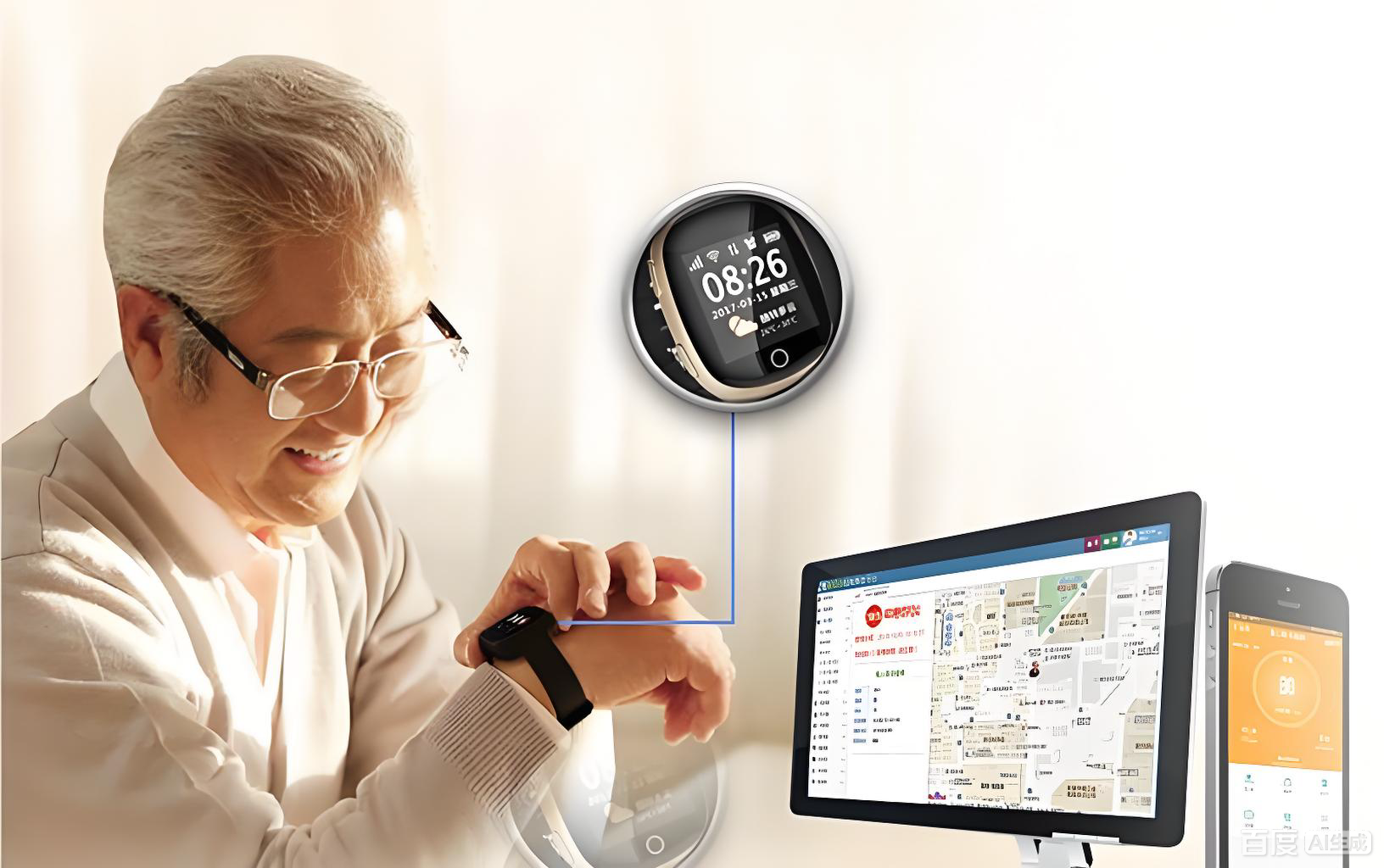 健康管理:为老人佩戴智能手环,实时监测心率、血压等指标,数据同步至家庭医生与子女手机APP。当指标异常时,系统推送健康建议,必要时协助预约远程会诊[10]^;